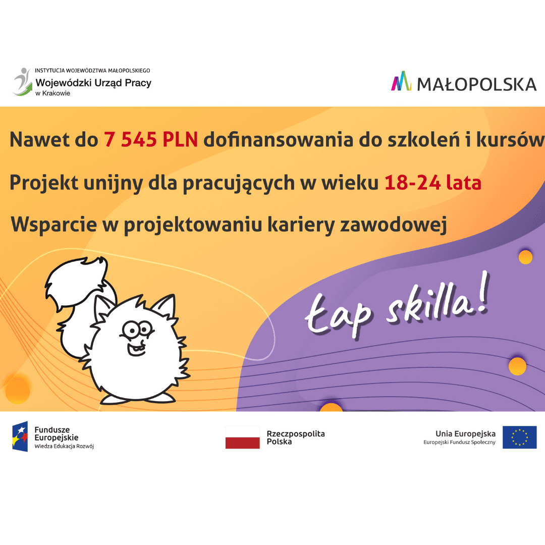 Jesteś osobą młodą pracującą i chcesz poprawić swoją sytuację zawodową, Wojewódzki Urząd Pracy w Krakowie zaprasza do udziału w unijnym projekcie Łap skilla!