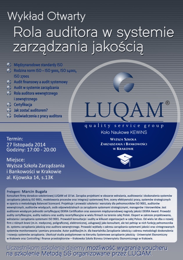 Wykład otwarty pt.”Rola auditora w systemie zarządzania jakością”